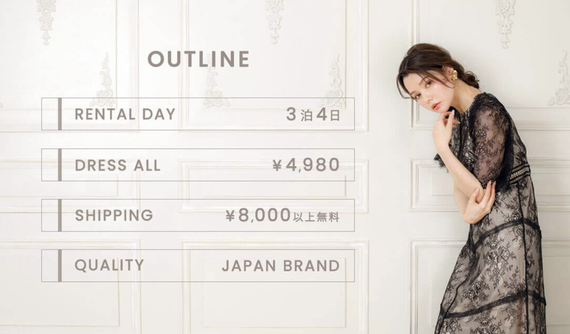 公式サイトはこちら リリアージュ 業界最安級!ドレス一律1着4,980円(税込) 他社様で1着2,980円もありますが、安い商品は品数が少なく実際の人気ドレスは6000円以上や税抜価格など、 合計金額が高くなってしまうケースが多いです。 そういったカラクリと業界標準の平均価格を考えたときの最安値として 業界最安級の4,980円(税込)と謳っております。 商品名 リリアージュ カテゴリ アパレル靴